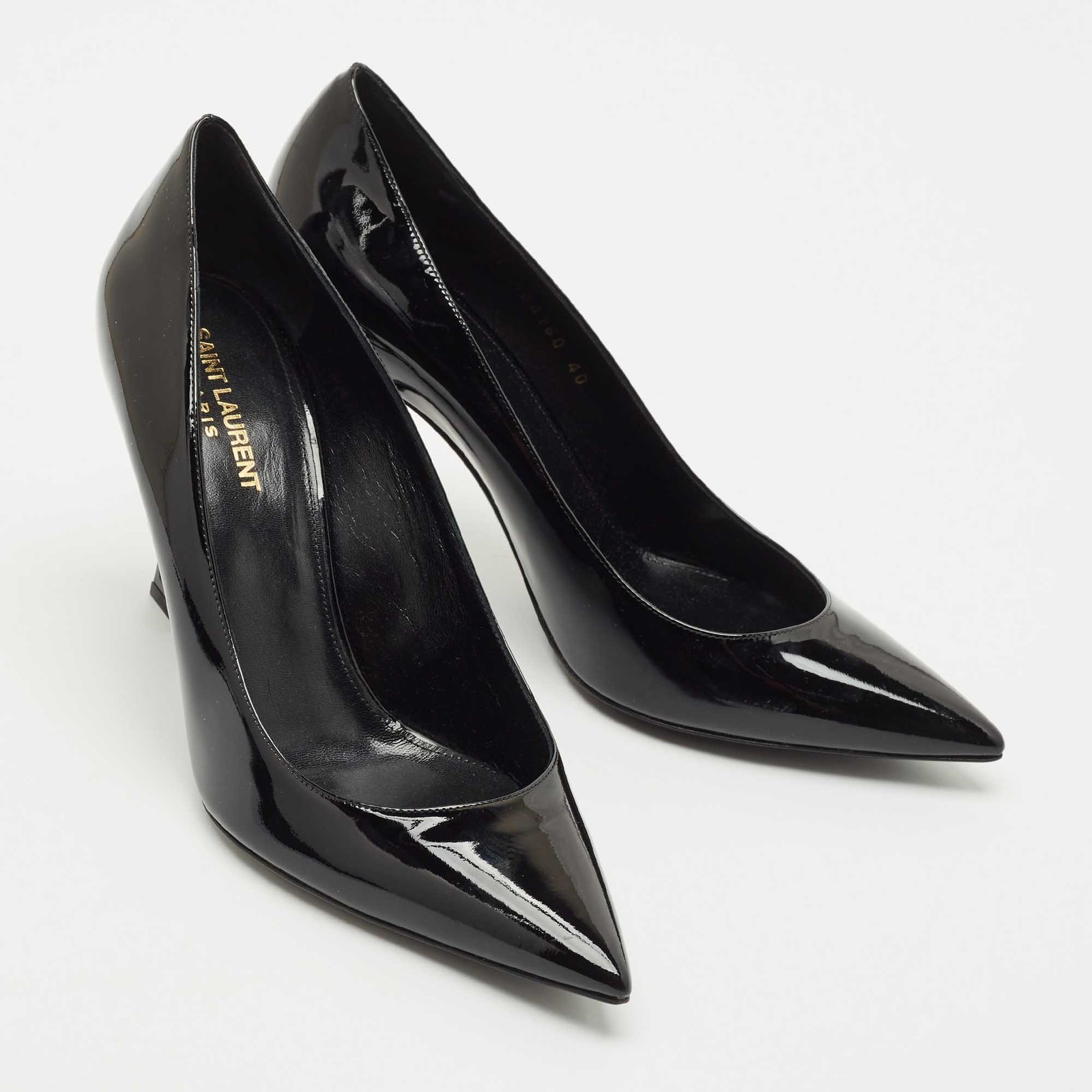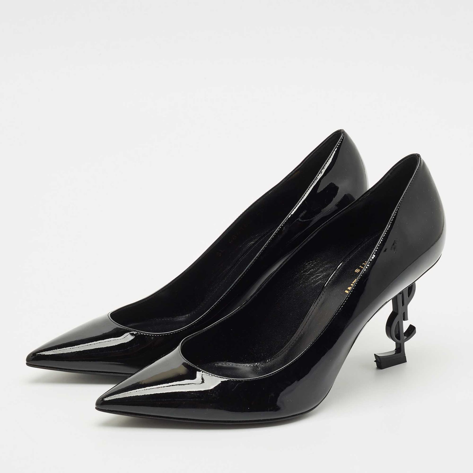 The fashion house’s tradition of excellence, coupled with modern design sensibilities, works to make these YSL heels a fabulous choice. Theyll help you deliver a chic look with ease.Certified by The Luxury Closet - This item has gone through a detailed authentication process overseen by our experts. We offer a lifetime guarantee of authenticity on all our items. Import duties, taxes and charges are not included in the item price. These charges are the buyers responsibility. Please check with your country’s customs office to determine what these additional cost will be prior to buying. Our eBay Store About Us Contact Us Add to Favorite Sellers Saint Laurent Black Patent Leather Opyum Pointed Toe Pumps Size 40 $884.4 The fashion house’s tradition of excellence, coupled with modern design sensibilities, works to make these YSL heels a fabulous choice. Theyll help you deliver a chic look with ease. Product Details Brand Color Black Dimensions Material Patent Leather Size 40 Outsole Width Outsole Length Heel Height Includes Certified by The Luxury Closet This item has gone through a detailed authentication process overseen by our experts. We offer a lifetime guarantee of authenticity on all our items. How We Check The in-house team of experts at The Luxury Closet is highly trained to verify the authenticity and the condition of the luxury products. They ensure that only 100% authentic items are put on sale.The evaluation process is unique with its own mix of assessment criteria and differs according to the category. Each item is evaluated based on the following combination of hallmarks, hardware, stitching, symmetry, material, craftsmanship, stamping, codes, hologram stickers, and packaging. Our authenticators also check if the items have been modified or amended (e.g., aftermarket diamonds, replaced batteries, repaired bags, etc.) International Buyers Import duties, taxes and charges are not included in the item price. These charges are the buyers responsibility. Please check with your country’s customs office to determine what these additional cost will be prior to buying.