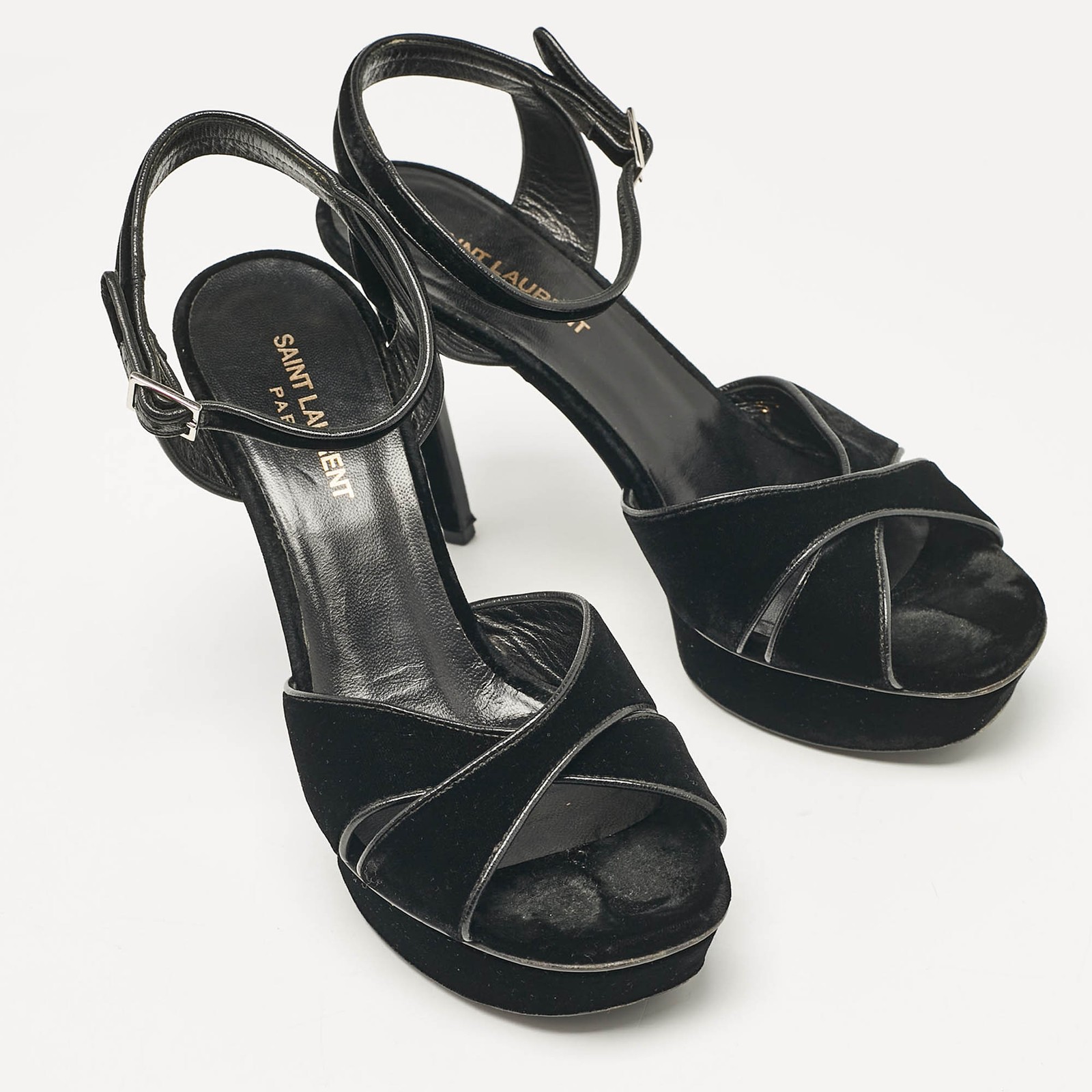 These sandals will offer you both luxury and comfort. Made from quality materials, they come in a versatile shade and are equipped with comfortable insoles.Certified by The Luxury Closet - This item has gone through a detailed authentication process overseen by our experts. We offer a lifetime guarantee of authenticity on all our items. Import duties, taxes and charges are not included in the item price. These charges are the buyers responsibility. Please check with your country’s customs office to determine what these additional cost will be prior to buying. Our eBay Store About Us Contact Us Add to Favorite Sellers Saint Laurent Black Velvet Bianca Ankle Strap Sandals Size 39 $174.9 These sandals will offer you both luxury and comfort. Made from quality materials, they come in a versatile shade and are equipped with comfortable insoles. Product Details Brand Color Black Dimensions Material Velvet Size 39 Outsole Width 8 cm Outsole Length 20 cm Heel Height 11 cm Includes Original Dustbag Certified by The Luxury Closet This item has gone through a detailed authentication process overseen by our experts. We offer a lifetime guarantee of authenticity on all our items. How We Check The in-house team of experts at The Luxury Closet is highly trained to verify the authenticity and the condition of the luxury products. They ensure that only 100% authentic items are put on sale.The evaluation process is unique with its own mix of assessment criteria and differs according to the category. Each item is evaluated based on the following combination of hallmarks, hardware, stitching, symmetry, material, craftsmanship, stamping, codes, hologram stickers, and packaging. Our authenticators also check if the items have been modified or amended (e.g., aftermarket diamonds, replaced batteries, repaired bags, etc.) International Buyers Import duties, taxes and charges are not included in the item price. These charges are the buyers responsibility. Please check with your country’s customs office to determine what these additional cost will be prior to buying.