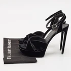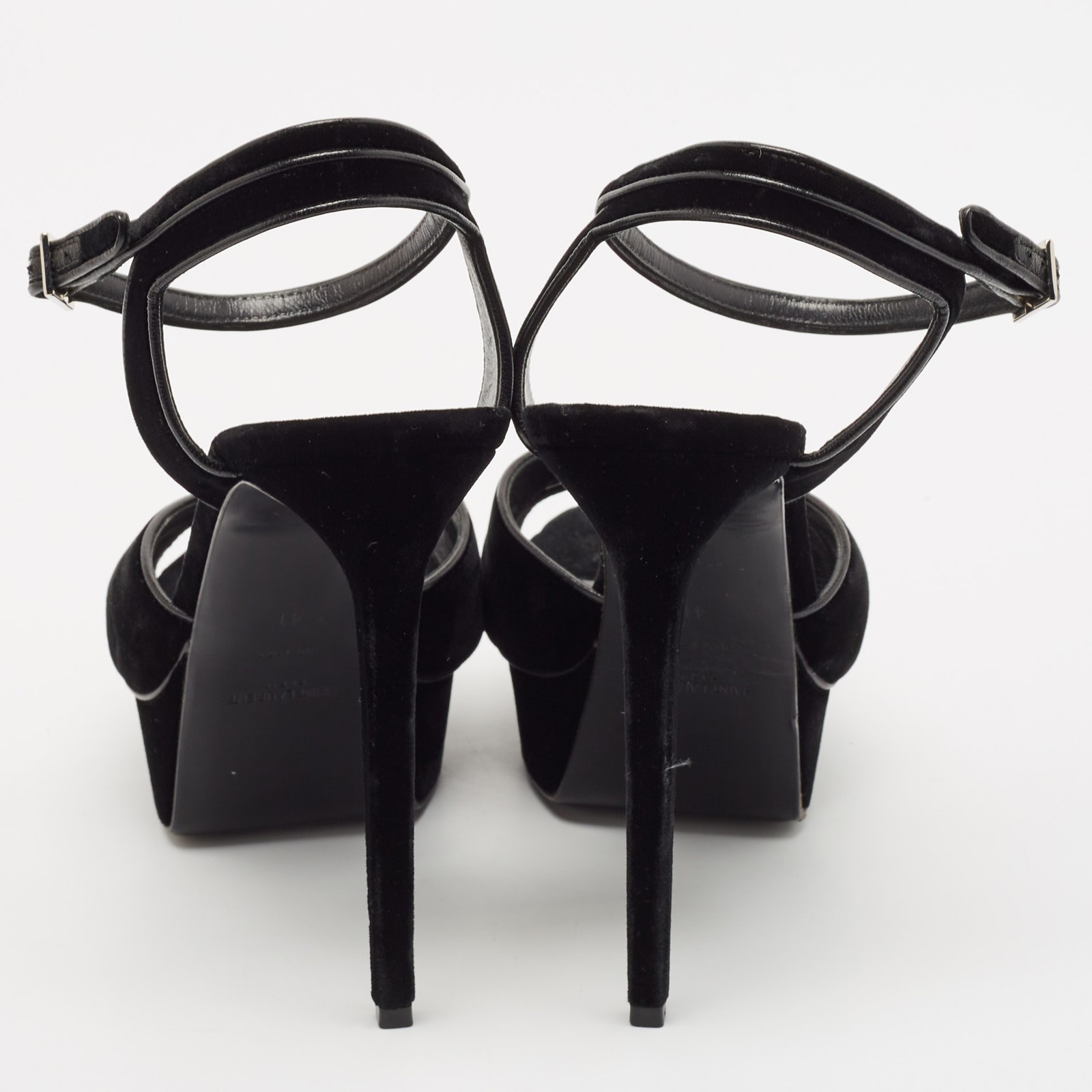 These sandals will frame your feet in an elegant manner. Crafted from quality materials, they flaunt a classy display, comfortable insoles and durable heels.Certified by The Luxury Closet - This item has gone through a detailed authentication process overseen by our experts. We offer a lifetime guarantee of authenticity on all our items. Import duties, taxes and charges are not included in the item price. These charges are the buyers responsibility. Please check with your country’s customs office to determine what these additional cost will be prior to buying. Our eBay Store About Us Contact Us Add to Favorite Sellers Saint Laurent Black Velvet Tribute Ankle Strap Sandals Size 41 $265.1 These sandals will frame your feet in an elegant manner. Crafted from quality materials, they flaunt a classy display, comfortable insoles and durable heels. Product Details Brand Color Black Dimensions Material Velvet Size 41 Outsole Width 7 cm Outsole Length 23 cm Heel Height 15 cm Includes The Luxury Closet Packaging Certified by The Luxury Closet This item has gone through a detailed authentication process overseen by our experts. We offer a lifetime guarantee of authenticity on all our items. How We Check The in-house team of experts at The Luxury Closet is highly trained to verify the authenticity and the condition of the luxury products. They ensure that only 100% authentic items are put on sale.The evaluation process is unique with its own mix of assessment criteria and differs according to the category. Each item is evaluated based on the following combination of hallmarks, hardware, stitching, symmetry, material, craftsmanship, stamping, codes, hologram stickers, and packaging. Our authenticators also check if the items have been modified or amended (e.g., aftermarket diamonds, replaced batteries, repaired bags, etc.) International Buyers Import duties, taxes and charges are not included in the item price. These charges are the buyers responsibility. Please check with your country’s customs office to determine what these additional cost will be prior to buying.