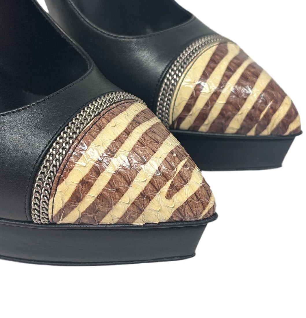Size: 37.5 Material: Leather Condition: Pre-Loved Color: Black, Tan, Brown, All sales final