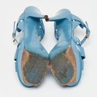 These Saint Laurent sandals are made of patent leather straps, added with gold tone hardware, and lifted on platforms and slim heels. The blue sandals are secured with buckle closure at the ankles.Certified by The Luxury Closet - This item has gone through a detailed authentication process overseen by our experts. We offer a lifetime guarantee of authenticity on all our items. Import duties, taxes and charges are not included in the item price. These charges are the buyers responsibility. Please check with your country’s customs office to determine what these additional cost will be prior to buying. Our eBay Store About Us Contact Us Add to Favorite Sellers Saint Laurent Blue Patent Leather Tribute Platform Ankle Strap Sandals Size 38 $259.6 These Saint Laurent sandals are made of patent leather straps, added with gold tone hardware, and lifted on platforms and slim heels. The blue sandals are secured with buckle closure at the ankles. Product Details Brand Color Blue Dimensions Material Patent Leather Size 38 Outsole Width 7 cm Outsole Length 21.5 cm Heel Height 13.5 cm Includes The Luxury Closet Packaging Certified by The Luxury Closet This item has gone through a detailed authentication process overseen by our experts. We offer a lifetime guarantee of authenticity on all our items. How We Check The in-house team of experts at The Luxury Closet is highly trained to verify the authenticity and the condition of the luxury products. They ensure that only 100% authentic items are put on sale.The evaluation process is unique with its own mix of assessment criteria and differs according to the category. Each item is evaluated based on the following combination of hallmarks, hardware, stitching, symmetry, material, craftsmanship, stamping, codes, hologram stickers, and packaging. Our authenticators also check if the items have been modified or amended (e.g., aftermarket diamonds, replaced batteries, repaired bags, etc.) International Buyers Import duties, taxes and charges are not included in the item price. These charges are the buyers responsibility. Please check with your country’s customs office to determine what these additional cost will be prior to buying.