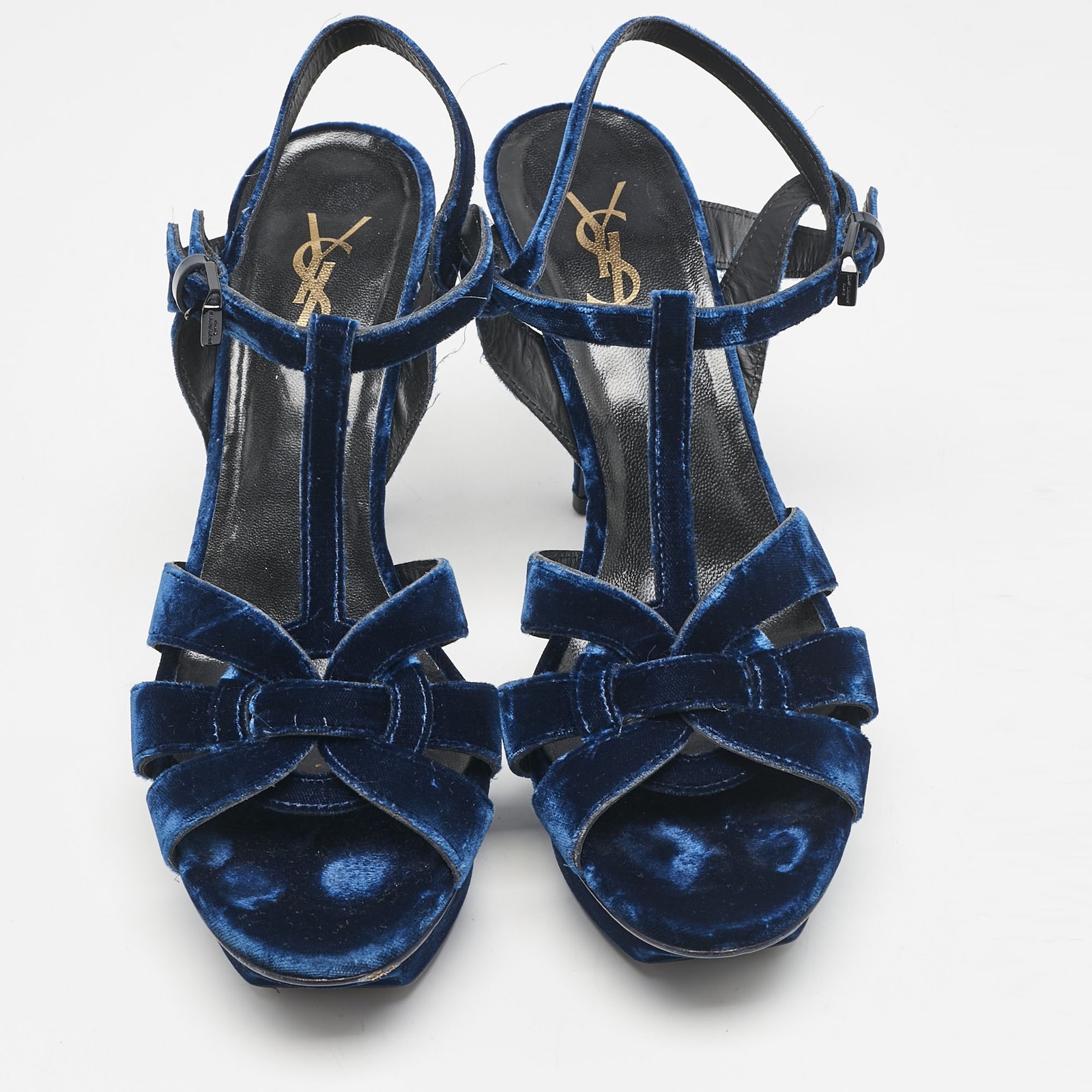 These sandals will frame your feet in an elegant manner. Crafted from quality materials, they flaunt a classy display, comfortable insoles and durable heels.Certified by The Luxury Closet - This item has gone through a detailed authentication process overseen by our experts. We offer a lifetime guarantee of authenticity on all our items. Import duties, taxes and charges are not included in the item price. These charges are the buyers responsibility. Please check with your country’s customs office to determine what these additional cost will be prior to buying. Our eBay Store About Us Contact Us Add to Favorite Sellers Saint Laurent Blue Velvet Tribute Ankle Strap Sandals Size 38.5 $249.7 These sandals will frame your feet in an elegant manner. Crafted from quality materials, they flaunt a classy display, comfortable insoles and durable heels. Product Details Brand Color Blue Dimensions Material Velvet Size 38.5 Outsole Width 7.5 cm Outsole Length 24 cm Heel Height 11.5 cm Includes The Luxury Closet Packaging Certified by The Luxury Closet This item has gone through a detailed authentication process overseen by our experts. We offer a lifetime guarantee of authenticity on all our items. How We Check The in-house team of experts at The Luxury Closet is highly trained to verify the authenticity and the condition of the luxury products. They ensure that only 100% authentic items are put on sale.The evaluation process is unique with its own mix of assessment criteria and differs according to the category. Each item is evaluated based on the following combination of hallmarks, hardware, stitching, symmetry, material, craftsmanship, stamping, codes, hologram stickers, and packaging. Our authenticators also check if the items have been modified or amended (e.g., aftermarket diamonds, replaced batteries, repaired bags, etc.) International Buyers Import duties, taxes and charges are not included in the item price. These charges are the buyers responsibility. Please check with your country’s customs office to determine what these additional cost will be prior to buying.