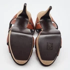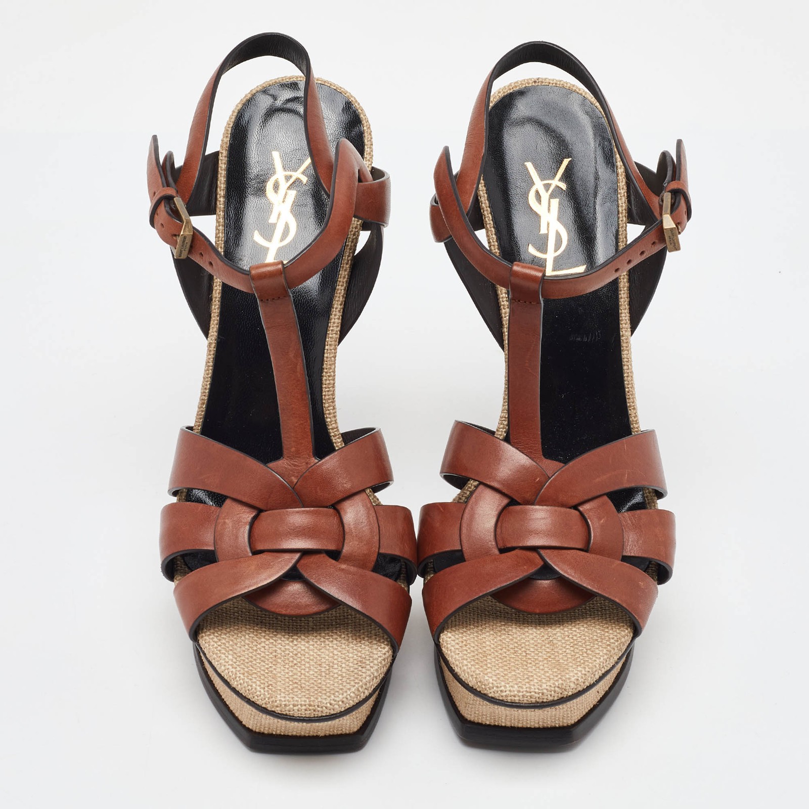 An iconic silhouette, the Saint Laurent Tribute sandals in brown leather exude timeless sophistication. Featuring intertwining straps, a high platform, and a towering heel, they offer both elegance and stability. The perfect statement piece for effortlessly refined style.Certified by The Luxury Closet - This item has gone through a detailed authentication process overseen by our experts. We offer a lifetime guarantee of authenticity on all our items. Import duties, taxes and charges are not included in the item price. These charges are the buyers responsibility. Please check with your country’s customs office to determine what these additional cost will be prior to buying. Our eBay Store About Us Contact Us Add to Favorite Sellers Saint Laurent Brown Leather Tribute Platform Sandals Size 41 $262.9 An iconic silhouette, the Saint Laurent Tribute sandals in brown leather exude timeless sophistication. Featuring intertwining straps, a high platform, and a towering heel, they offer both elegance and stability. The perfect statement piece for effortlessly refined style. Product Details Brand Color Brown Dimensions Material Leather Size 41 Outsole Width 7.5 cm Outsole Length 24 cm Heel Height 15 cm Includes The Luxury Closet Packaging Certified by The Luxury Closet This item has gone through a detailed authentication process overseen by our experts. We offer a lifetime guarantee of authenticity on all our items. How We Check The in-house team of experts at The Luxury Closet is highly trained to verify the authenticity and the condition of the luxury products. They ensure that only 100% authentic items are put on sale.The evaluation process is unique with its own mix of assessment criteria and differs according to the category. Each item is evaluated based on the following combination of hallmarks, hardware, stitching, symmetry, material, craftsmanship, stamping, codes, hologram stickers, and packaging. Our authenticators also check if the items have been modified or amended (e.g., aftermarket diamonds, replaced batteries, repaired bags, etc.) International Buyers Import duties, taxes and charges are not included in the item price. These charges are the buyers responsibility. Please check with your country’s customs office to determine what these additional cost will be prior to buying.