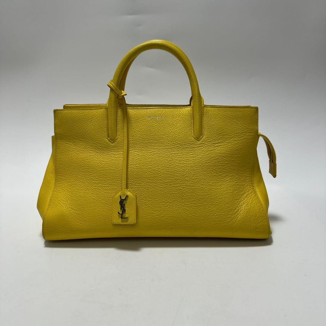 Saint Laurent Paris Cabas Rive Gauche handbag tote with YSL logo charm Cassandra, crafted from leather with silver hardware. Suitable for both men and women, can be used as a one-shoulder, shoulder, or hand-carry bag in a 2-way style. The size is approximately 8.27 inches in height, 12.20 inches in width, and 3.54 inches in depth. The handle height is 3.54 inches, and the shoulder strap length is approximately 41.34 inches. The condition is good with no noticeable scratches or dirt, and it can still be used for a long time. The color is yellow. The material is leather. Comes with a shoulder strap. I promise fast shipping via FedEx or DHL as soon as possible! Import duties, taxes and charges are not included in the item price or shipping charges. These charges are the buyer’s responsibility. These charges are normally collected by the delivering freight (shipping) company or when you pick the item up - do not confuse them for additional shipping charges.