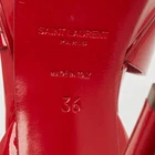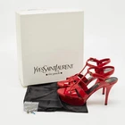 Crafted in dark red patent leather, these Tribute platform sandals feature multiple straps and sleek heels. Iconic, chic, and unmistakably YSL.Certified by The Luxury Closet - This item has gone through a detailed authentication process overseen by our experts. We offer a lifetime guarantee of authenticity on all our items. Import duties, taxes and charges are not included in the item price. These charges are the buyers responsibility. Please check with your country’s customs office to determine what these additional cost will be prior to buying. Our eBay Store About Us Contact Us Add to Favorite Sellers Saint Laurent Dark Red Patent Leather Tribute Platform Sandals Size 36 $558.8 Crafted in dark red patent leather, these Tribute platform sandals feature multiple straps and sleek heels. Iconic, chic, and unmistakably YSL. Product Details Brand Color Red Dimensions Material Patent Leather Size 36 Outsole Width Outsole Length Heel Height Includes Certified by The Luxury Closet This item has gone through a detailed authentication process overseen by our experts. We offer a lifetime guarantee of authenticity on all our items. How We Check The in-house team of experts at The Luxury Closet is highly trained to verify the authenticity and the condition of the luxury products. They ensure that only 100% authentic items are put on sale.The evaluation process is unique with its own mix of assessment criteria and differs according to the category. Each item is evaluated based on the following combination of hallmarks, hardware, stitching, symmetry, material, craftsmanship, stamping, codes, hologram stickers, and packaging. Our authenticators also check if the items have been modified or amended (e.g., aftermarket diamonds, replaced batteries, repaired bags, etc.) International Buyers Import duties, taxes and charges are not included in the item price. These charges are the buyers responsibility. Please check with your country’s customs office to determine what these additional cost will be prior to buying.
