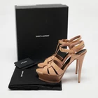 These sandals will frame your feet in an elegant manner. Crafted from quality materials, they flaunt a classy display, comfortable insoles and durable heels.Certified by The Luxury Closet - This item has gone through a detailed authentication process overseen by our experts. We offer a lifetime guarantee of authenticity on all our items. Import duties, taxes and charges are not included in the item price. These charges are the buyers responsibility. Please check with your country’s customs office to determine what these additional cost will be prior to buying. Our eBay Store About Us Contact Us Add to Favorite Sellers Saint Laurent Dusty Pink Patent Leather Tribute Platform Sandals Size 39 $448.8 These sandals will frame your feet in an elegant manner. Crafted from quality materials, they flaunt a classy display, comfortable insoles and durable heels. Product Details Brand Color Pink Dimensions Material Patent Leather Size 39 Outsole Width 7 cm Outsole Length 20.5 cm Heel Height 15 cm Includes Original Dustbag, Original Box, Info Booklet Certified by The Luxury Closet This item has gone through a detailed authentication process overseen by our experts. We offer a lifetime guarantee of authenticity on all our items. How We Check The in-house team of experts at The Luxury Closet is highly trained to verify the authenticity and the condition of the luxury products. They ensure that only 100% authentic items are put on sale.The evaluation process is unique with its own mix of assessment criteria and differs according to the category. Each item is evaluated based on the following combination of hallmarks, hardware, stitching, symmetry, material, craftsmanship, stamping, codes, hologram stickers, and packaging. Our authenticators also check if the items have been modified or amended (e.g., aftermarket diamonds, replaced batteries, repaired bags, etc.) International Buyers Import duties, taxes and charges are not included in the item price. These charges are the buyers responsibility. Please check with your country’s customs office to determine what these additional cost will be prior to buying.