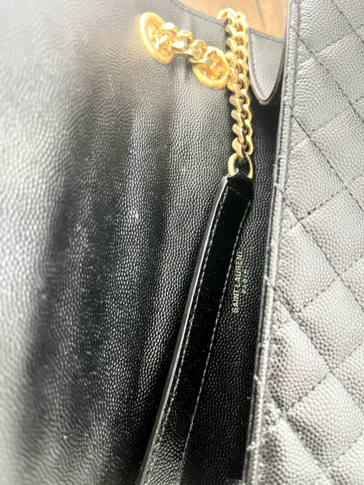 This Saint Laurent Envelope bag is a stunning classic—the quilted leather is luxurious and well-maintained with no flaws. Though it comes without the authenticity card, the embossed serial number confirms it's genuine. A perfect investment piece at a great price compared to retail!