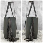 Love this Saint Laurent tote—the glossy leather and fringe details give it such a chic, vintage vibe. Perfect size for daily essentials, and the matching pouch is a nice bonus. The quality feels luxurious, and even with minor wear, it still looks amazing. Super versatile and stylish, definitely worth it!