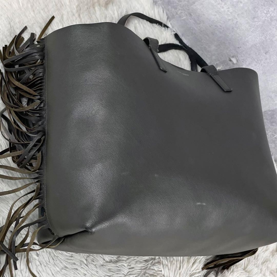 A4-Enabled Saint Laurent Leather Tote Bag Shopper Fringe Key Features Yves Saint Laurent (Saint Laurent) vintage leather tote bag featuring all-leather construction, stylish fringe tassels, and embossed logo pattern. This versatile unisex bag measures approximately 27cm (height) x 47cm (width) x 14cm (depth), with a handle length of 56cm. It includes a matching pouch (13cm x 19cm). Crafted from high-quality glossy leather, it exudes luxury and sophistication, perfect for daily use or as a fashion statement. The bag shows minor signs of wear, such as tassel tearing, handle deterioration, and corner scuffs, but remains functional and stylish. Ideal for carrying essentials like a phone, wallet, and notebook. A unique vintage piece with a timeless design, suitable for both men and women. Item Specifics: Brand: Yves Saint Laurent Type: Tote Bag Material: Leather Color: Gray Size: 27cm x 47cm x 14cm Handle Length: 56 Specifications Brand Saint Laurent Country Japan Product Description Description Thank you for your interest. This item is not new, but a used item that was given away. Please check the photos for the condition of the item. Please understand that the condition of the item is subjective and the standard of evaluation and feeling may vary from person to person, so please be aware that this is a used item before bidding. Please check the photos for the condition of the item, such as scratches and stains. To prevent problems, please feel free to contact us if you have any questions about the size or other details of the item. We will be happy to adjust the price. We will do our best to ship your order as soon as possible. We will do our best to ship as soon as possible, but there may be delays during the busy harvest season. Remarks All the products we sell are obtained and sold by pawn shops that are authorized brands, so all the products we handle have been authenticated to meet our strict standards for authenticity, so please buy with confidence. Payment Supports managed payments Please pay within 5 days after auction is finished. About Us We are located in Japan. It's our pleasure to make you happy by proposing our recommend item. If you have any questions or request about items, please feel free to ask us. International Buyers - Please Note: -Importduties, taxes, and charges are not included in the item price or shipping charges. These charges are the buyer's responsibility. -Please check with your country's customs office to determine what these additional costs will be prior to bidding/buying. -These charges are normally collected by the delivering freight (shipping) company or when you pick the item up - do not confuse them for additional shipping charges. -We do not mark merchandise values below value or mark items as - gifts - The US and International government regulations prohibit such behavior. Thank you for your understanding