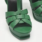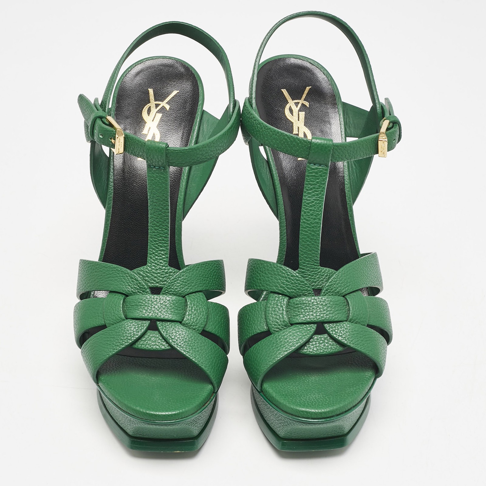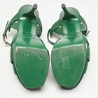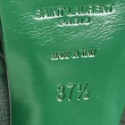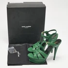 Step into iconic design with Saint Laurent’s Tribute sandals in green leather. The platform silhouette and knotted straps balance comfort with statement appeal. Style them with wide leg pants or a flowy maxi for head turning glamour.Certified by The Luxury Closet - This item has gone through a detailed authentication process overseen by our experts. We offer a lifetime guarantee of authenticity on all our items. Import duties, taxes and charges are not included in the item price. These charges are the buyers responsibility. Please check with your country’s customs office to determine what these additional cost will be prior to buying. Our eBay Store About Us Contact Us Add to Favorite Sellers Saint Laurent Green Leather Tribute Platform Sandals Size 37.5 $306.9 Step into iconic design with Saint Laurent’s Tribute sandals in green leather. The platform silhouette and knotted straps balance comfort with statement appeal. Style them with wide leg pants or a flowy maxi for head turning glamour. Product Details Brand Color Green Dimensions Material Leather Size 37.5 Outsole Width Outsole Length Heel Height Includes Certified by The Luxury Closet This item has gone through a detailed authentication process overseen by our experts. We offer a lifetime guarantee of authenticity on all our items. How We Check The in-house team of experts at The Luxury Closet is highly trained to verify the authenticity and the condition of the luxury products. They ensure that only 100% authentic items are put on sale.The evaluation process is unique with its own mix of assessment criteria and differs according to the category. Each item is evaluated based on the following combination of hallmarks, hardware, stitching, symmetry, material, craftsmanship, stamping, codes, hologram stickers, and packaging. Our authenticators also check if the items have been modified or amended (e.g., aftermarket diamonds, replaced batteries, repaired bags, etc.) International Buyers Import duties, taxes and charges are not included in the item price. These charges are the buyers responsibility. Please check with your country’s customs office to determine what these additional cost will be prior to buying.
