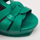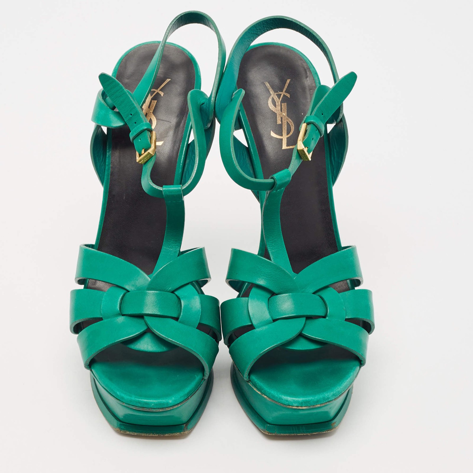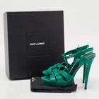 Our eBay Store About Us Contact Us Add to Favorite Sellers Saint Laurent Green Leather Tribute Sandals Size 40 The fashionista in you will fall in love with these Saint Laurent Tribute sandals. They are made from leather with intertwined straps on the vamps and ankle buckle closure. The gold-tone hardware, 14.5cm heels, and platform give this pair a fine finish. Product Details Brand Saint Laurent Paris Color Green Includes Original Dustbag, Original Box Outsole Length 23 cm Outsole Width 7.5 cm Size 40 Certified by The Luxury Closet This item has gone through a detailed authentication process overseen by our experts. We offer a lifetime guarantee of authenticity on all our items. How We Check The in-house team of experts at The Luxury Closet is highly trained to verify the authenticity and the condition of the luxury products. They ensure that only 100% authentic items are put on sale.The evaluation process is unique with its own mix of assessment criteria and differs according to the category. Each item is evaluated based on the following combination of hallmarks, hardware, stitching, symmetry, material, craftsmanship, stamping, codes, hologram stickers, and packaging. Our authenticators also check if the items have been modified or amended (e.g., aftermarket diamonds, replaced batteries, repaired bags, etc.) International Buyers Import duties, taxes and charges are not included in the item price. These charges are the buyers responsibility. Please check with your country’s customs office to determine what these additional cost will be prior to buying.
