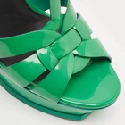 Our eBay Store About Us Contact Us Add to Favorite Sellers Saint Laurent Green Patent Tribute Platform Sandals Size 39 Add bold color and signature flair with Saint Laurent's Tribute sandals in green patent leather. Elevated by a sky-high platform and interwoven straps, this iconic design is a must for statement evening looks. Pair them with a minimalist dress or flared trousers for a runway-ready finish. Product Details Brand Saint Laurent Paris Color Green Includes The Luxury Closet Packaging Outsole Length 23 cm Outsole Width 8 cm Size 39 Certified by The Luxury Closet This item has gone through a detailed authentication process overseen by our experts. We offer a lifetime guarantee of authenticity on all our items. How We Check The in-house team of experts at The Luxury Closet is highly trained to verify the authenticity and the condition of the luxury products. They ensure that only 100% authentic items are put on sale.The evaluation process is unique with its own mix of assessment criteria and differs according to the category. Each item is evaluated based on the following combination of hallmarks, hardware, stitching, symmetry, material, craftsmanship, stamping, codes, hologram stickers, and packaging. Our authenticators also check if the items have been modified or amended (e.g., aftermarket diamonds, replaced batteries, repaired bags, etc.) International Buyers Import duties, taxes and charges are not included in the item price. These charges are the buyers responsibility. Please check with your country’s customs office to determine what these additional cost will be prior to buying.