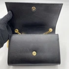 SAINT LAURENT shoulder bag, crossbody pochette. Classic Kate Small logo, Cassandra YSL gold hardware, tassel fringe. Made of black leather. Size: 5.51 inches (H) x 7.87 inches (W) x 2.36 inches (D). Shoulder strap: 47.24 inches. There are no noticeable scratches or dirt, and it is still in good condition for extended use. I promise fast shipping via FedEx or DHL as soon as possible! Import duties, taxes and charges are not included in the item price or shipping charges. These charges are the buyer’s responsibility. These charges are normally collected by the delivering freight (shipping) company or when you pick the item up - do not confuse them for additional shipping charges.