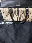 SAINT LAURENT baby duffle handbag featuring a leopard print and black leather combination. The material is leather and fur. The hair on hide is thinning as shown in the picture, but it adds to the charm. There are small dot-like scratches or stains on the suede inside. I promise fast shipping via FedEx or DHL as soon as possible! Import duties, taxes and charges are not included in the item price or shipping charges. These charges are the buyer’s responsibility. These charges are normally collected by the delivering freight (shipping) company or when you pick the item up - do not confuse them for additional shipping charges.