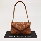 Our eBay Store About Us Contact Us Add to Favorite Sellers Saint Laurent Loulou Puffer Small Brown Chevron Leather Shoulder Bag Saint Laurent is known to have an incredible impact on the fashion world with its revolutionary and timeless designs. This Loulou bag shows the brand's regard for well-executed details and puffer silhouettes. Created from chevron leather, it gets a luxe update with the brand signature on the front, and it is held by dual chain handles at the top. The nylon interior of this bag will keep your valuables safe, and the gold-tone accents offer it an alluring finish. Product Details Brand Saint Laurent Paris Includes The Luxury Closet Packaging Certified by The Luxury Closet This item has gone through a detailed authentication process overseen by our experts. We offer a lifetime guarantee of authenticity on all our items. How We Check The in-house team of experts at The Luxury Closet is highly trained to verify the authenticity and the condition of the luxury products. They ensure that only 100% authentic items are put on sale.The evaluation process is unique with its own mix of assessment criteria and differs according to the category. Each item is evaluated based on the following combination of hallmarks, hardware, stitching, symmetry, material, craftsmanship, stamping, codes, hologram stickers, and packaging. Our authenticators also check if the items have been modified or amended (e.g., aftermarket diamonds, replaced batteries, repaired bags, etc.) International Buyers Import duties, taxes and charges are not included in the item price. These charges are the buyers responsibility. Please check with your country’s customs office to determine what these additional cost will be prior to buying.