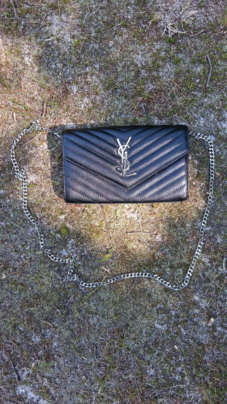 This Saint Laurent crossbody is pure luxury—sleek black leather with stunning silver hardware. The perfect size for essentials, it’s both stylish and practical. The chain strap adds a chic touch, making it ideal for day or night. Love how effortlessly it elevates any outfit!