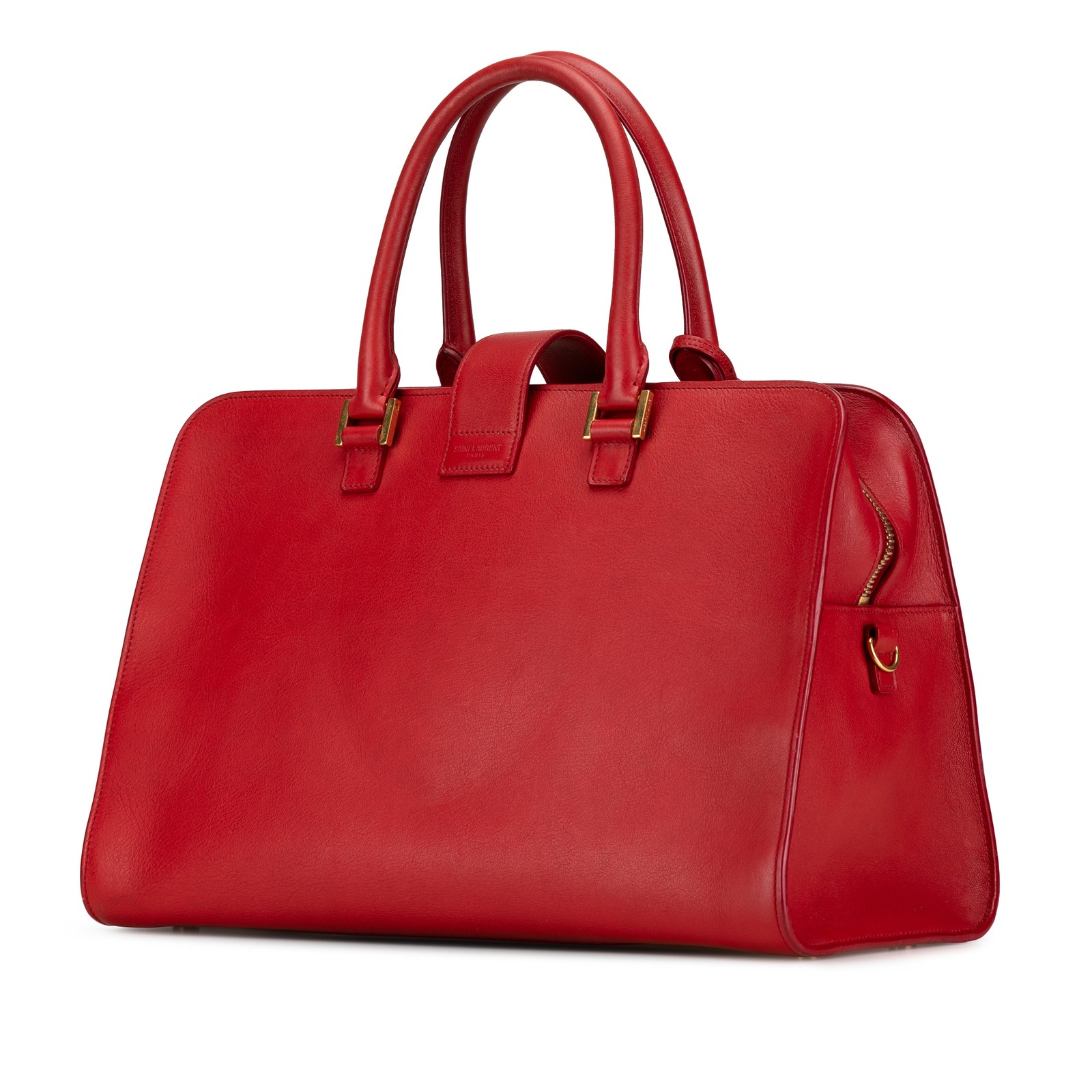 The Cabas satchel features a leather body, rolled leather handles, a top zip with magnetic snap closure, and interior zip and slip pockets. Condition Details: Exterior Back Creased, Worn. Exterior Back stained with Mold, Transfer Of Color. Exterior Bottom Worn. Exterior Bottom stained with Other. Lock Scratched. Exterior Corners Worn. Exterior Front Worn. Exterior Front stained with Mold, Transfer Of Color. Exterior Handle Discolored, Worn. Exterior Handle stained with Mold, Other. Interior Pocket Worn. Interior Pocket stained with Mold. Interior Lining Worn. Interior Lining stained with Mold. Practical Attachment Rusty/Tarnished, Scratched. Exterior Side Cracked, Worn. Exterior Side stained with Mold, Other. Item has an odor of Musty. Exterior Top Worn. Zipper Scratched. Dimensions: Length: 24.000 cm Width: 36.500 cm Height: 17.500 cm SKU: 101019529 International Buyers - Please Note: Import duties, taxes, and customs fees are not included in the item price. These are the buyer's responsibility. Please check with your local customs office to understand any extra costs before buying. These fees are usually collected by the shipping company or when you pick up your item - they are not extra shipping charges.
