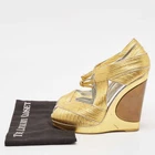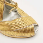 These Saint Laurent platform sandals bring a sculptural element to evening dressing. The metallic gold leather shimmers under the light, while the bold wedge heel adds height and drama. A statement piece that doesn’t compromise on comfort.Certified by The Luxury Closet - This item has gone through a detailed authentication process overseen by our experts. We offer a lifetime guarantee of authenticity on all our items. Import duties, taxes and charges are not included in the item price. These charges are the buyers responsibility. Please check with your country’s customs office to determine what these additional cost will be prior to buying. Our eBay Store About Us Contact Us Add to Favorite Sellers Saint Laurent Paris Metallic Gold Leather Venice Sculpted Wedge Platform Sandals Size 39 $182.6 These Saint Laurent platform sandals bring a sculptural element to evening dressing. The metallic gold leather shimmers under the light, while the bold wedge heel adds height and drama. A statement piece that doesn’t compromise on comfort. Product Details Brand Color Gold Dimensions Material Leather Size 39 Outsole Width 8 cm Outsole Length 20 cm Heel Height 13 cm Includes The Luxury Closet Packaging Certified by The Luxury Closet This item has gone through a detailed authentication process overseen by our experts. We offer a lifetime guarantee of authenticity on all our items. How We Check The in-house team of experts at The Luxury Closet is highly trained to verify the authenticity and the condition of the luxury products. They ensure that only 100% authentic items are put on sale.The evaluation process is unique with its own mix of assessment criteria and differs according to the category. Each item is evaluated based on the following combination of hallmarks, hardware, stitching, symmetry, material, craftsmanship, stamping, codes, hologram stickers, and packaging. Our authenticators also check if the items have been modified or amended (e.g., aftermarket diamonds, replaced batteries, repaired bags, etc.) International Buyers Import duties, taxes and charges are not included in the item price. These charges are the buyers responsibility. Please check with your country’s customs office to determine what these additional cost will be prior to buying.