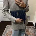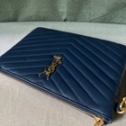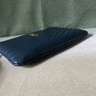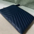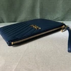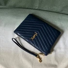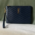 Saint Laurent Navy Blue Leather Matelasse Monogram Clutch Wristlet Great condition (clean leather body, minimal wears on interior, intact corners, no cracks, no odors, zipper runs smoothly) Serial number TCT379039 1016 Dimensions 9x6.5in Comes with leather strap.