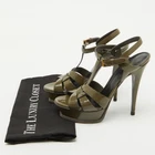 Saint Laurent Olive Green Patent Leather Tribute Platform Sandals Size 38 EU