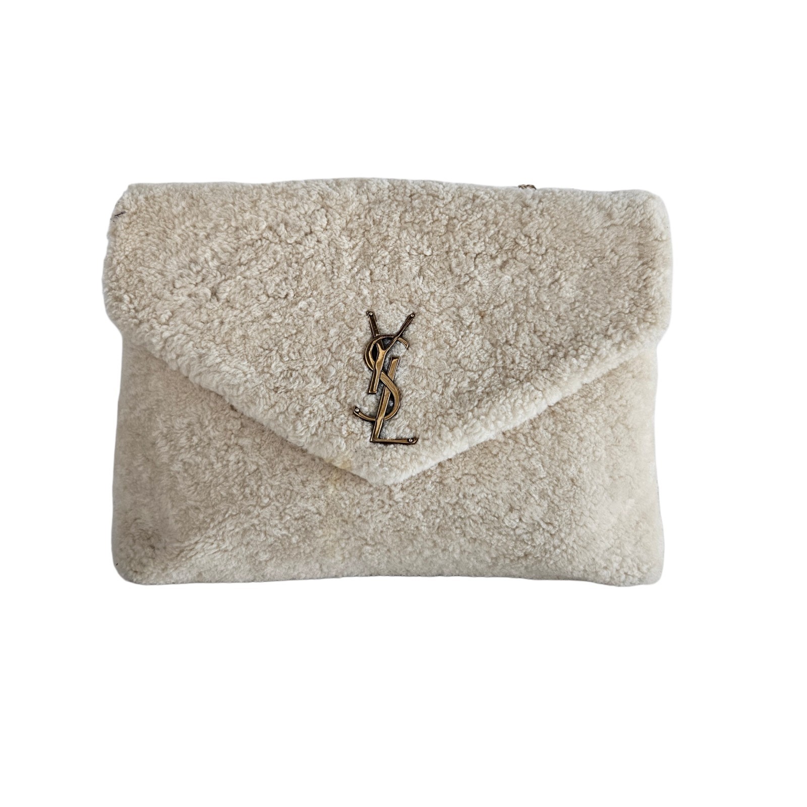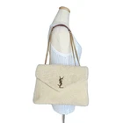 Saint Laurent Paris Cream Shearling LouLou Toy Bag Attributes Material: Shearling Color: Cream Condition; Good condition, has scratches on the bottom, flap & has stain H: 21 cm L: 30 cm W: 10 cm