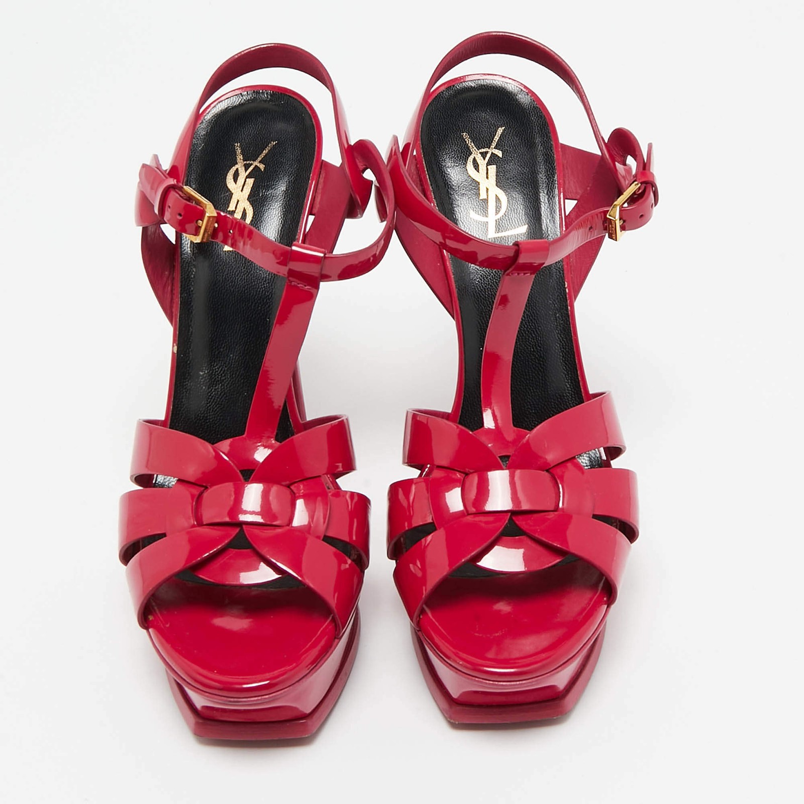 Our eBay Store About Us Contact Us Add to Favorite Sellers Saint Laurent Pink Patent Leather Tribute Sandals Size 40 The sandals to invest in this season are these. Meticulously crafted, these exquisite Saint Laurent heels combine luxury and comfort, creating a statement pair that's both fashionable and fabulous for every occasion. Product Details Brand Saint Laurent Paris Color Pink Includes The Luxury Closet Packaging Outsole Length 22.5 cm Outsole Width 7 cm Size 40 Certified by The Luxury Closet This item has gone through a detailed authentication process overseen by our experts. We offer a lifetime guarantee of authenticity on all our items. How We Check The in-house team of experts at The Luxury Closet is highly trained to verify the authenticity and the condition of the luxury products. They ensure that only 100% authentic items are put on sale.The evaluation process is unique with its own mix of assessment criteria and differs according to the category. Each item is evaluated based on the following combination of hallmarks, hardware, stitching, symmetry, material, craftsmanship, stamping, codes, hologram stickers, and packaging. Our authenticators also check if the items have been modified or amended (e.g., aftermarket diamonds, replaced batteries, repaired bags, etc.) International Buyers Import duties, taxes and charges are not included in the item price. These charges are the buyers responsibility. Please check with your country’s customs office to determine what these additional cost will be prior to buying.
