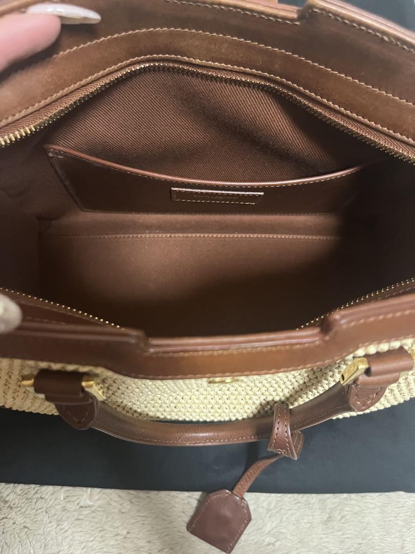 YSL straw and leather combination bag with logo plate in beige/brown. Material: Straw/Leather. Design: With logo plate. Zipper: Yes. No dirt or tears. I promise fast shipping via FedEx or DHL as soon as possible! Import duties, taxes and charges are not included in the item price or shipping charges. These charges are the buyer’s responsibility. These charges are normally collected by the delivering freight (shipping) company or when you pick the item up - do not confuse them for additional shipping charges.