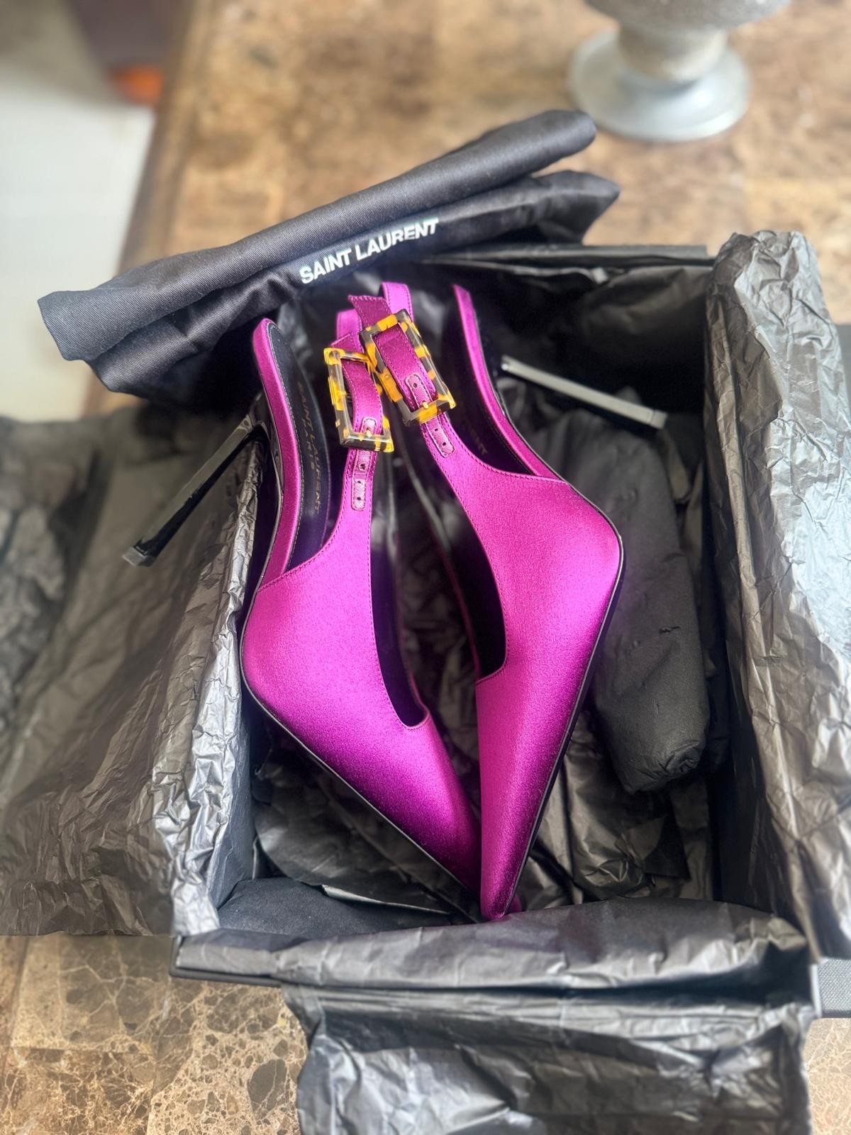 Saint Laurent Sling back heels, 💯 Authentic from Saks Department store. Brand new with box, size 38, color purple. Retail price is $1050.00 asking $600.