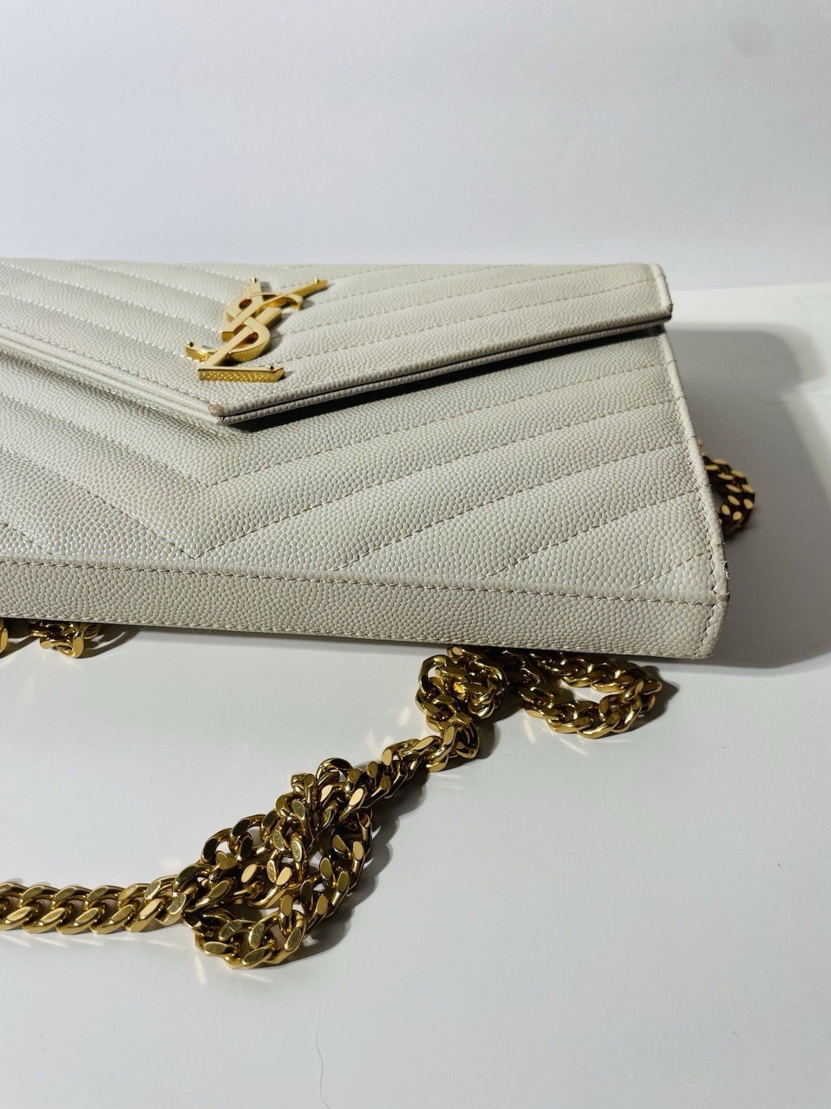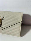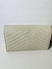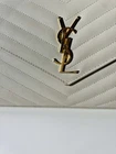 The Saint Laurent YSL Elegant Beige Leather Shoulder Bag is a stylish and sophisticated accessory for women looking to elevate their outfit. Made from luxurious leather with a monogram pattern design, this crossbody bag features a lined interior for added luxury. The elegant beige color adds a touch of sophistication to any ensemble, making it a versatile and chic choice for all occasions.