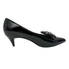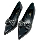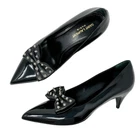 GLEAMING Saint Laurent silver spike studded bow point toe kitten heel pumps! Sweet but so sexy •Size: 39 •Heel: 50mm / ~2" •Condition: Excellent preowned with minimal, normal signs of wear - wear to soles •Color: black & silver All photos of your actual shoes. Measurements are approximate and for guidance. Color may vary by screen. Sizes vary between designers. Smoke free, DOG FRIENDLY home. 10% of net sales go directly to charity at my local food bank. tags: spring fall transitional streetwear street style edgy studded spikes rock and roll rock & roll pinup goth gothic punk whimsigoth whimsygoth designer luxury authentic real party wedding guest prom special occasion cocktail debutante ball gala formal evening black tie holiday party new year's eve going out sexy dress night out date evening red carpet office business work meeting boss secretary real estate agent YSL yves