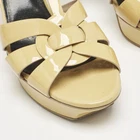 Perfectly sewn and finished to ensure an elegant look and fit, these designer shoes are a purchase youll love flaunting. They look great on the feet.Certified by The Luxury Closet - This item has gone through a detailed authentication process overseen by our experts. We offer a lifetime guarantee of authenticity on all our items. Import duties, taxes and charges are not included in the item price. These charges are the buyers responsibility. Please check with your country’s customs office to determine what these additional cost will be prior to buying. Our eBay Store About Us Contact Us Add to Favorite Sellers Saint Laurent Yellow Patent Leather Platform Sandals Size 41 $374 Perfectly sewn and finished to ensure an elegant look and fit, these designer shoes are a purchase youll love flaunting. They look great on the feet. Product Details Brand Color Yellow Dimensions Material Patent Leather Size 41 Outsole Width Outsole Length Heel Height Includes Certified by The Luxury Closet This item has gone through a detailed authentication process overseen by our experts. We offer a lifetime guarantee of authenticity on all our items. How We Check The in-house team of experts at The Luxury Closet is highly trained to verify the authenticity and the condition of the luxury products. They ensure that only 100% authentic items are put on sale.The evaluation process is unique with its own mix of assessment criteria and differs according to the category. Each item is evaluated based on the following combination of hallmarks, hardware, stitching, symmetry, material, craftsmanship, stamping, codes, hologram stickers, and packaging. Our authenticators also check if the items have been modified or amended (e.g., aftermarket diamonds, replaced batteries, repaired bags, etc.) International Buyers Import duties, taxes and charges are not included in the item price. These charges are the buyers responsibility. Please check with your country’s customs office to determine what these additional cost will be prior to buying.