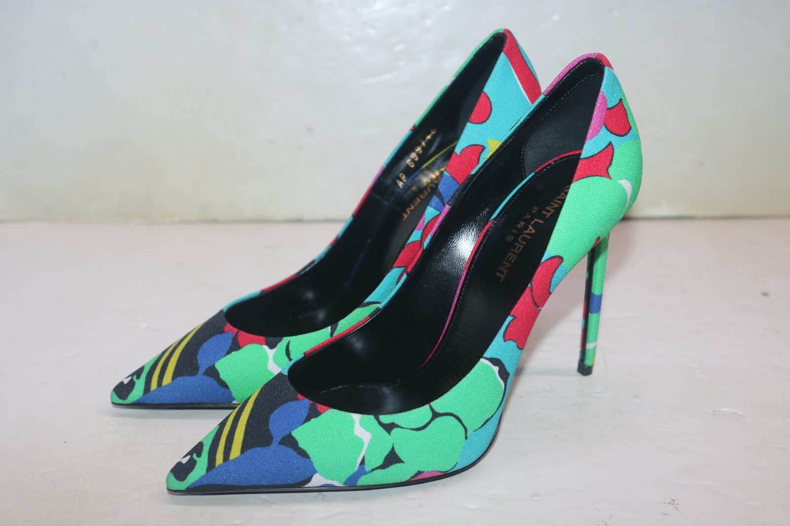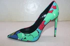 Saint Laurent 105mm Zoe Floral Print Pumps Size 38 THE DETAILS Saint Laurent 105mm Zoe floral-print pumps A signature shoe from Saint Laurent, the Zoe pumps are defined by their timeless pointed-toe silhouette. For SS22, the label updates the style with a vibrant floral print. Made in Italy Highlights Multicolour Leather All-over floral print Pointed toe Branded insole High heel Slip-on style C-3