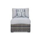 Elevate your patio seating arrangement with this set of two outdoor armless chairs. Crafted with sturdy metal frames, they feature hand woven wicker in a sophisticated gray finish with soft cushions upholstered in stain resistant, fade resistant, and easy to clean fabric for comfort and durability. The set also comes with two throw pillows. Check out our Saki collection for more.FeaturesSet of two outdoor armless chairs Rust free, powder coated aluminum frames Handwoven all-weather resin wicker for enhnaced durabilityGray finishStain, fade and UV resistant, high performance Nuvella polyester upholsteryStainless steel hardwareBlack finished block legsCheck our Saki collection for more matching set pieces29L x 34.5W x 34H, Seat width: 29, Seat depth: 21.5, Seat height: 19.25, in inches Free Shipping Over $49.99* Details Saki 35 Inch Outdoor Armless Chair Set of 2 with 2 Pillows, Wicker, Gray Product Description: Elevate your patio seating arrangement with this set of two outdoor armless chairs. Crafted with sturdy metal frames, they feature hand woven wicker in a sophisticated gray finish with soft cushions upholstered in stain resistant, fade resistant, and easy to clean fabric for comfort and durability. The set also comes with two throw pillows. Check out our Saki collection for more. Features Set of two outdoor armless chairs Rust free, powder coated aluminum frames Handwoven all-weather resin wicker for enhnaced durability Gray finish Stain, fade and UV resistant, high performance Nuvella polyester upholstery Stainless steel hardware Black finished block legs Check our Saki collection for more matching set pieces 29L x 34.5W x 34H, Seat width29, Seat depth21.5, Seat height19.25, in inches