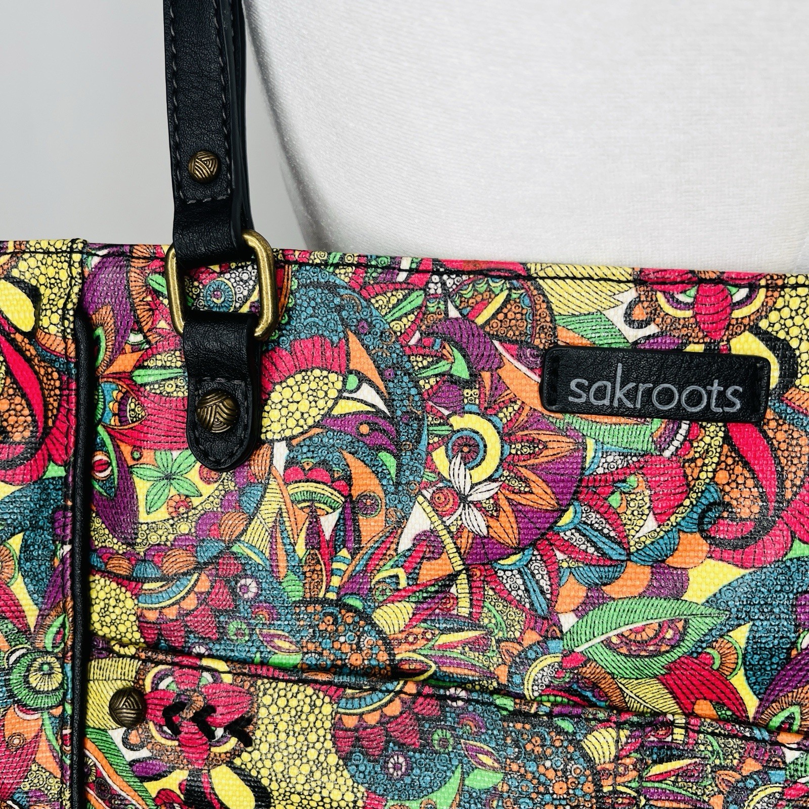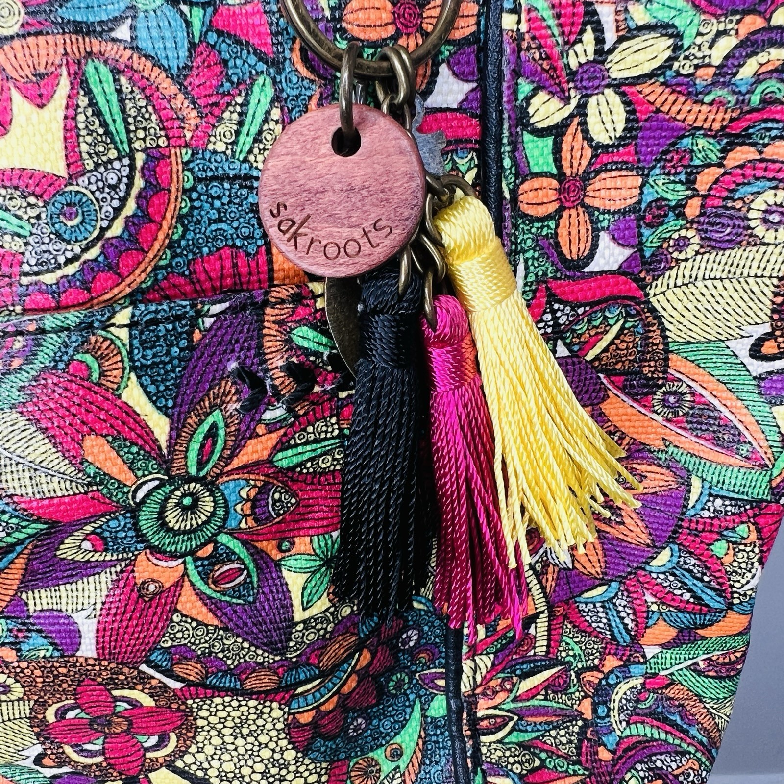 Love this vibrant Sakroots tote—so stylish and practical! The bold floral print and tassel details give it a fun boho feel, while the spacious interior and handy pockets keep everything organized. Perfect for festivals, travel, or everyday use. The faux leather looks great, and the zip closure adds security. Super comfy to carry too! Highly recommend for anyone who loves color and functionality.