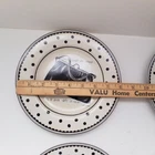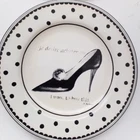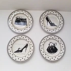 Preowned excellent condition Mademoiselle Sakura Kimberly Poloson Shoes and Purses black polka dots and white salad bread plates. 8 1/4" diameter. Set of four. No original box. Will be wrapped with care for shipping. Tags: kitchen decor tableware high heels handbags ceramic collection collector home brunch gift party bridal shower heels pocketbook