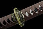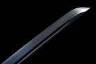 Product Parameter: NAME: 黑 影 太 刀 OVERALL: 103 cm/40.6'' BLADE: 70 cm/27.6'' TSUKA : 26 cm/10.24'' WIDTH: 3.2 cm/1.26'' THICKNESS: 0.7 cm/0.28'' HRC(hardness): 56 CRAFT: Fully hand forged, water quenching,hand-polishing etc. MATERIAL: 1095 high carbon steel BLADE COLOR: Black BO-HI: with blood groove HAMON: No hamon SHAPE: Shinogidukuri NAKAGO: Full-tang ( 2 meguki fix the handle vertically ,very firm) KISSAKI: medium (chūkissaki) TSUKA: Hard wood core, hineri maki SAMEGAWA: White rayskin FUCHI / KASHIRA / MENUKI: Alloy TSUBA(HAND GUARD): Alloy SEPPA/HABAKI: Brass SAYA: Shinny lacquered wooden scabbard SAGEO: Japanese thick Synthetic silk wrapping cord * The steel we use is not the normal steel with the truck or cars or other life electrics, the steel use for the blade contents much more carbon and the purity can not be comparable. * It's a functinonal sword. After test, it can cut bamboo, A4 paper and water bottles,etc . * The sword stand is not include . Package include 1 sword + 1 random bag. Manual grinding: Using the unique bright stone of Longquan Town, hand grinding, very test sword casting skills and technology, grinding out the pattern effect is special texture! Ancient quenching: Modern vacuum heat treatment can meet the hardness requirements of most swords, but the traditional quenching method has better effect, can soften the medium strip steel, and the hardness is higher. Additional Service About us Sword Noun Explananation Delivery details Sword maintenance Additional Service It's free for engraving English words, Chinese Characters and Japanese Kanji , etc. You need pay extral $20-30 for engraving patterns. Sharpness Most of our blades are sharp. We can also make the blade unsharpened for free if you require. Matching Swords Set If you buy one katana, we can make a matching Wakizashi or Tanto for you. The price varies from different swords. Please contact us if you need make custom matching set. About us We have our own sword-casting factory. The factory is located in Longquan, a small town with a long history of sword-casting in China. Most of the famous Swords in China are made there. Rich raw materials, skilled technology, traditional sword casting technology from generation to generation. Manual production really takes a lot of time. We will prepare most products in advance ,and arrange delivery within about a week. However, sometimes the delivery time is delayed due to weather or raw materials,etc. we hope to get your understanding. Feel free to contact us to inquire about the status of your order. Each handmade sword is unique. Our swords are great for gifts or for your own collection. Our swordsmithing master makes every sword attentively, hope you can feel our sincerity. We will also give you the best customer service, any questions please feel free to contact us. Sword Noun Explananation Quenching After the blade has been shaped, the sword would be quenched. We quench our swords in either water or oil. Water quenching produces a tougher edge which can also be hardened further more using clay. Blades quenched in oil are still considerably hardened and do have superior flexibility compared to a water quenched blade. Folded Steel : In the forging process , the most useful process is the folding, where the metals are forge welded, folded, and welded again, as many as 124 times(15 times is the best). The folding removes impurities and helps even out the carbon content, while the alternating layers combine hardness with ductility to greatly enhance the toughness. The less impurities, the harder and sharper the blade will be. We have done cutting tests on the blades. it can cut bamboo(young bamboo tree), grass mattings and slice paper(The blade should be tilted at 45 degrees). Clay tempered : To maximize both the cutting edge and the resilience of the sword spine, a technique of differential heat-treatment is used.The sword is painted with layers of clay before heating, providing a thin layer or none at all on the edge of the sword, ensuring quick cooling to maximize the hardening for the edge.A thicker layer of clay is applied to the rest of the blade,causing slower cooling.This creates softer,more resilient steel, allowing the blade to absorb shock without breaking. About 1095 carbon steel : The best quality of high carbon steel is at 1095, the carbon content was 1.03%, and the element contains a small amount of chromium, molybdenum, vanadium, after heat treatment can reach HRc58-60 hardness, toughness is very good, but not resistant to rust, more be applied to traditional european-style hunting knife, large cutting knife and military dao. Such as the United States during world war ii "KA - BAR" saber is in 1095 as the blade material. Kobuse : The vast majority of modern katana and wakizashi are the maru type which is the most basic, with the entire sword being composed of a single steel. The kobuse type is made using two steels, which are called hagane (edge steel) and shingane (core steel). Steel of different materials is forged and welded together to hammer the basic shape of the sword. This allows the overall blade to have a higher toughness and absorb a lot of impact. Reducing the possibility of breaking or bending to some extent. Makes the blade not only has high hardness, but also has super toughness Delivery details a) Import duties, taxes and charges are not included in the item price or shipping charges . These charges are the buyer’s responsibility. b) If you do not receive the package, or the package is damaged during transportation. We'll take care of it. Please feel free to buy. c) If it is mentioned in the product description that the package includes the sword bag or sword holder , the style will be random. The sword holder or sword bag on the ebay picture is the props we use for shooting. If you really like a style, please contact us before buying. d) If you have any problem after recieve the package (wrong size, wrong style, etc.). We always