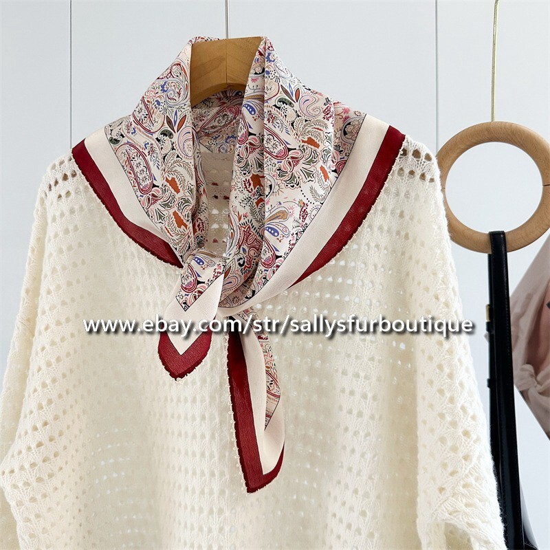 Scarf Care: Please hand wash the silk scarf in cold water, using gentle silk/wool wash. Do not wring. Gently squeeze the water, and dry in the shade. Iron on a low silk setting. Please do not machine wash. Item description: Size: 25 inches x 25 inches (68cm x 68cm) Material: 100% Crepe De Chine Silk Weight: 25g Lace Rolled on all edges. Made in China, no brand label. Shipping & Postage: We can dispatch to the following countries: US, UK, Canada, Australia and Most west European countries. If you need to post to other countries, please contact us before bidding. Standard SpeedPAK, 15-20 working days delivery time Postage Free FedEx express, 7-10 working days delivery time Postage $19.99 Return & Refund We will give full refund through Paypal for the items you are unhappy with. Postage is not refundable. The return address is included on the business card inside the parcel. Returned items must be posted within 7 days of receipt.