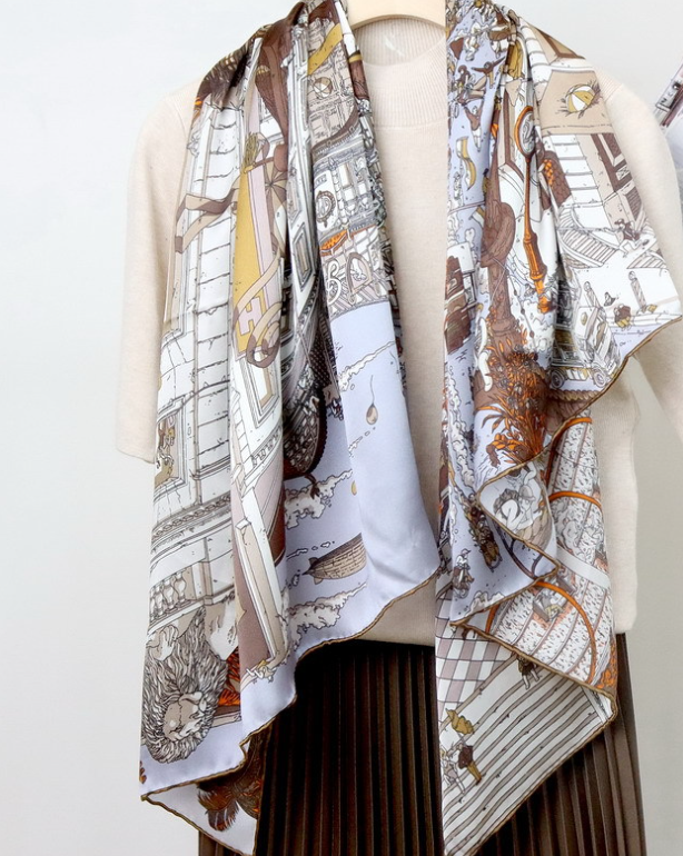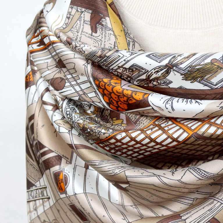 Versatile neckerchief print for adding some elegance and detail to a dark blouse or shirt. Quality jacquard twill with a great feel. Packaged well, great price, arrived quickly for overseas. Very good seller.