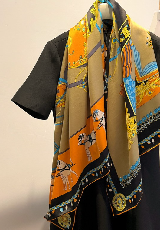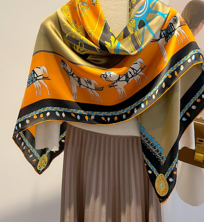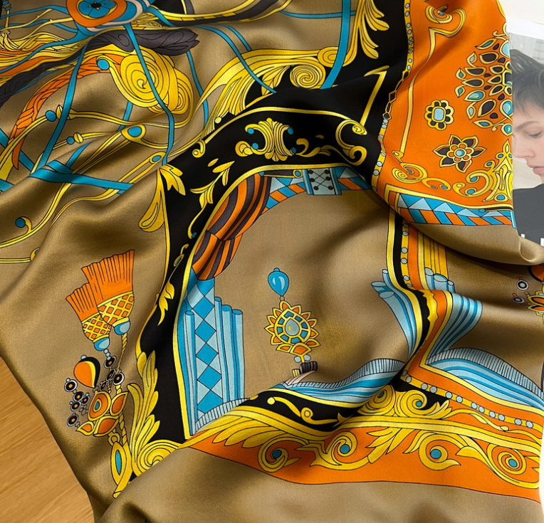 12 Momme Silk Scarf Wrap Bandanna Square Shawl 27 Inch Line Print