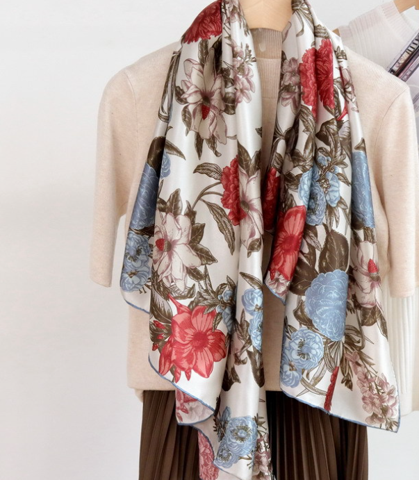 $ 10.03Pure 12 Momme Silk Wrap Scarf Bandanna flower Print Square Shawl 27''new