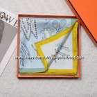 $ 25.22Hermes 90cm Silk Scarf Key Pattern Blue Gold Luxury Made in France