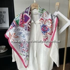 Sallys 18 Momme Twill Silk Double Face Floral Print Wrap Scarf 35 Inch Square Shawl
