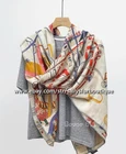 $ 31.56Sally 70% Cashmere 30% Silk Wrap Scarf Horse Plane Print Double Face Shawl 135cm
