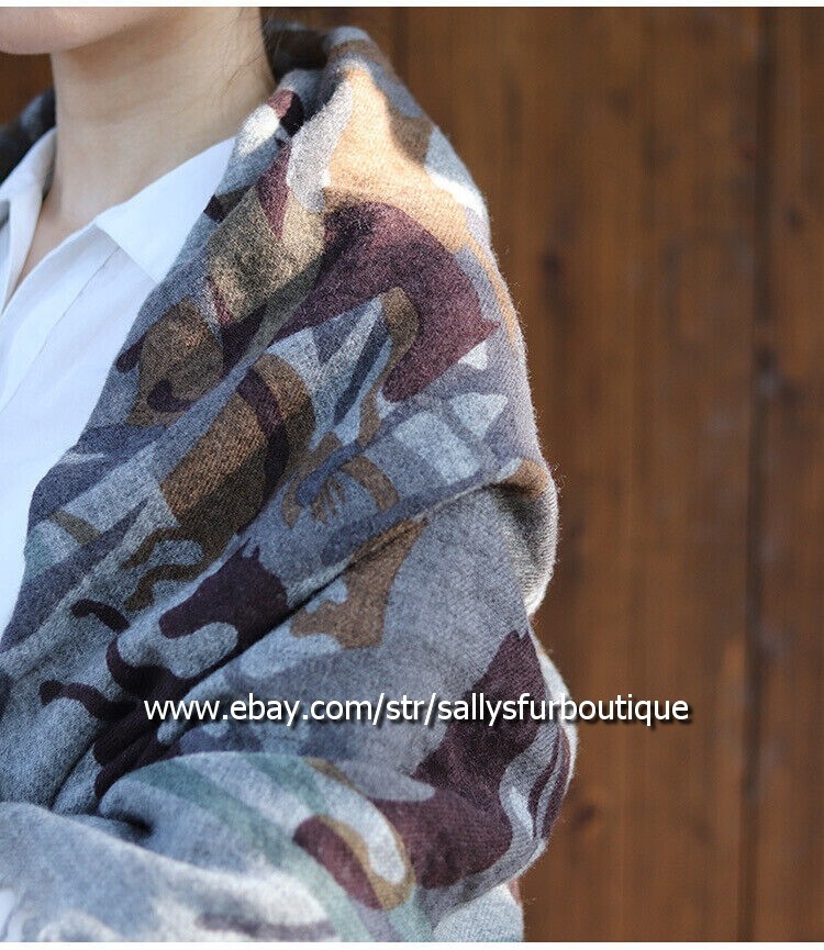 About Cashmere: Cashmere is a luxuriant wool that many a fashion-conscious woman has dreamed of wearing against her skin. Its silken feel, feather-light weight, and appreciable status make it highly desirable. It is the wool or fur of the Kashmir goat. 70% Kashmir goats in the world are raised in Inner Mongolia, China. Be wary of imitation cashmere. Often listings are stated as 100% cashmere, however are imitation cashmere, which does not have the special features of pure cashmere. Item description: Material: Pure cashmere shawl Size: 130cm x 130cm (51" x 51") including trims Weight: 155 gram Grey background with deep grey and brown horses. Soft and delicate, extra warm in the winter. Shipping & Postage: We can dispatch to the following countries: US, UK, Canada, Australia and Most west European countries. If you need to post to other countries, please contact us before bidding. SpeedPAK, 15-20 working days delivery time Postage Free Fedex express, 7-10 working days delivery time Postage $19.99 Return & Refund We will give full refund through Paypal for the items you are unhappy with. Postage is not refundable. The return address is included on the business card inside the parcel. Returned items must be posted within 7 days of receipt.