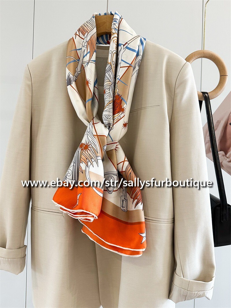 Scarf Care: Please hand wash the silk scarf in cold water, using gentle silk/wool wash. Do not wring. Gently squeeze the water, and dry in the shade. Iron on a low silk setting. Please do not machine wash. Item description: Size: 53 inches x 53 inches (135cm x 135cm) Material: 100% Twill silk, 12 Momme. Weight: 100g Print on one side of the scarf. Hand rolled on the 4 edges, so the size could be 1 inch difference. Made in China, no brand label. Shipping & Postage: We dispatch to worldwide, the postage will be vary Standard SpeedPAK, 7-10working days delivery time Postage FedEx express, 5-7 working days delivery time Postage Return & Refund We will give full refund through Paypal for the items you are unhappy with. Postage is not refundable. The return address is included on the business card inside the parcel. Returned items must be posted within 7 days of receipt.