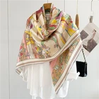 70% Cashmere 30% Silk Twill 2 Face Scarf 2 face Shawl Wrap 135X135cm stamp Print