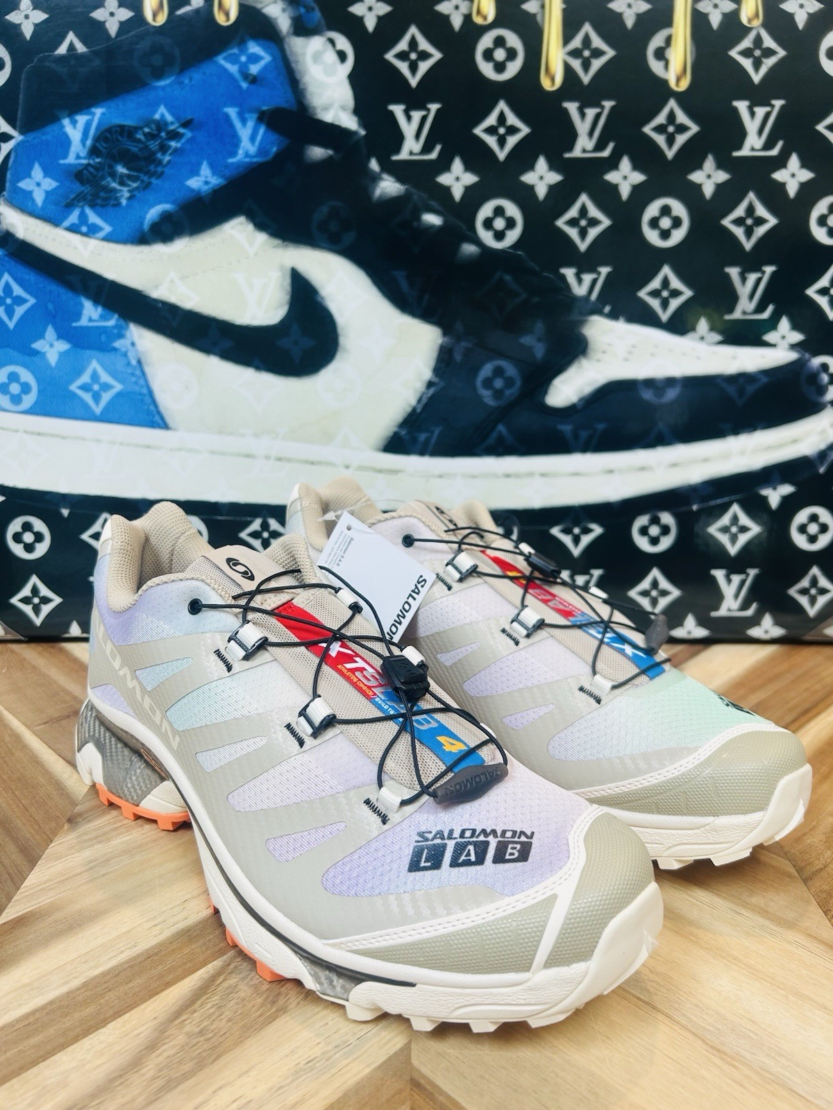 Elevate your sneaker game with these limited edition Salomon XT-4 OG Aurora Borealis Shortbread Orange Silver Grey sneakers. These shoes feature a lace-up closure and a low-top shaft style, making them perfect for cross training and CrossFit activities. The cushioned and breathable features of these sneakers ensure maximum comfort, while the rubber outsole provides excellent traction. These Salomon XT-4 sneakers come in a stunning multicolor design, with a solid pattern that is perfect for the nature-inspired theme of the shoe. The synthetic upper material and standard shoe width make these shoes a perfect fit for men's US size 13 and UK size 12.5. The sneakers are part of the Salomon XT product line and are manufactured in China. Get your hands on these rare and sold-out sneakers, and add a touch of the classic and '90s vibe to your shoe collection.
