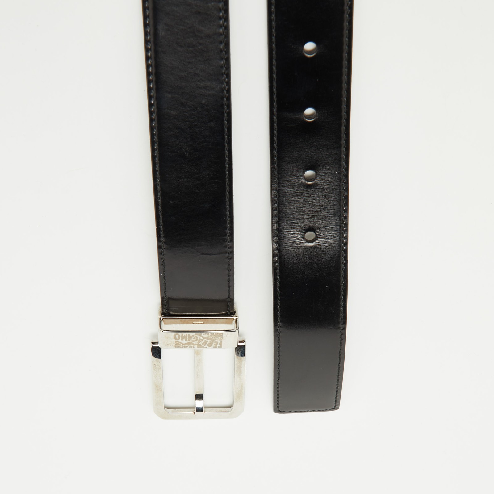 Salvatore Ferragamo Black Leather Reversible Adjustable Buckle Belt