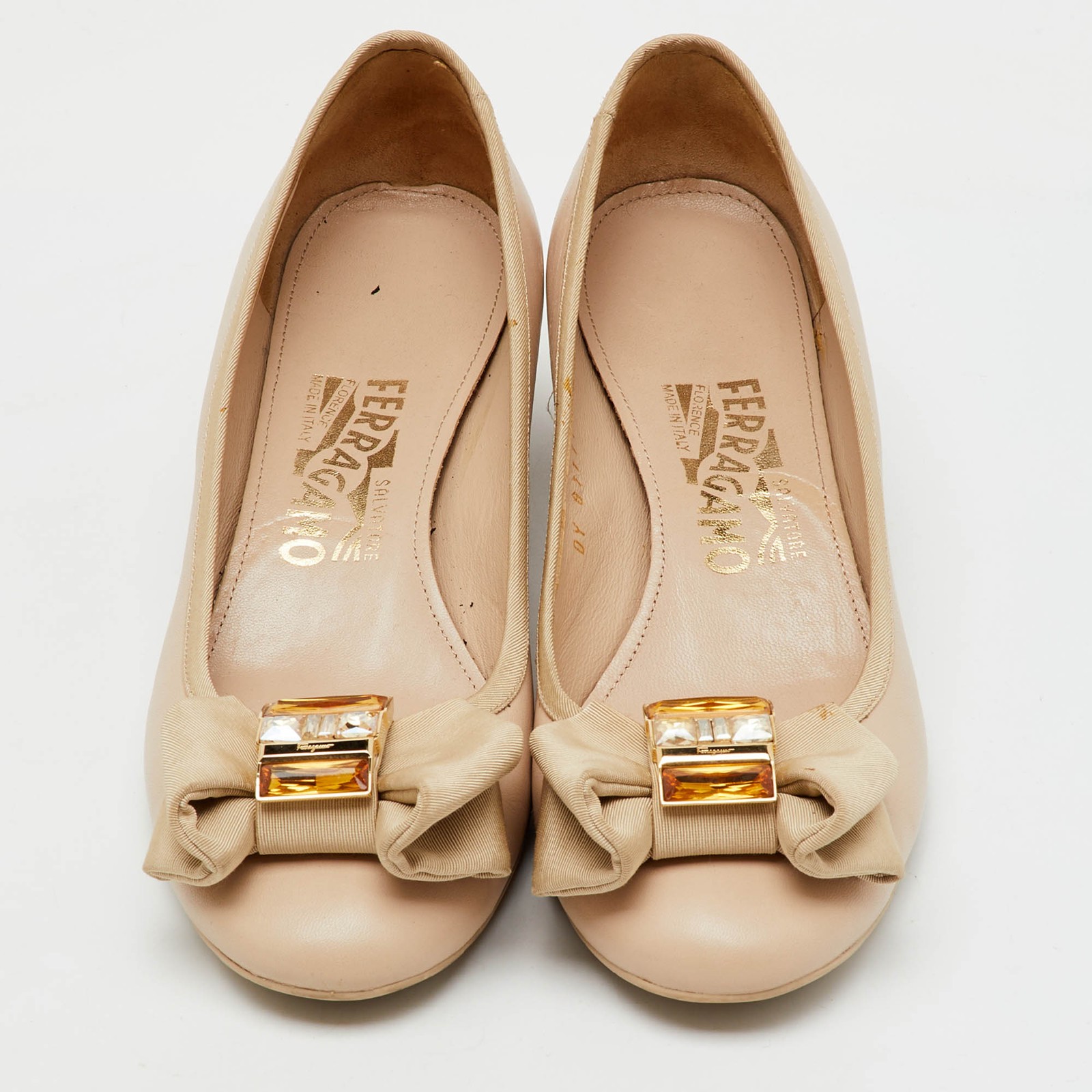 These Salvatore Ferragamo pumps combine classic design with a touch of sparkle. Crafted from beige leather, they feature a crystal adorned Vara bow and a low block heel for all day comfort. Refined and feminine, they’re ideal for workwear or special occasions. Pair with dresses or tailored looks for a chic touch.Certified by The Luxury Closet - This item has gone through a detailed authentication process overseen by our experts. We offer a lifetime guarantee of authenticity on all our items. Import duties, taxes and charges are not included in the item price. These charges are the buyers responsibility. Please check with your country’s customs office to determine what these additional cost will be prior to buying. Our eBay Store About Us Contact Us Add to Favorite Sellers Salvatore Ferragamo Beige Leather Crystal Bow Block Heel Pumps Size 37 $225.5 These Salvatore Ferragamo pumps combine classic design with a touch of sparkle. Crafted from beige leather, they feature a crystal adorned Vara bow and a low block heel for all day comfort. Refined and feminine, they’re ideal for workwear or special occasions. Pair with dresses or tailored looks for a chic touch. Product Details Brand Color Beige Dimensions Material Leather Size 37 Outsole Width Outsole Length Heel Height Includes Certified by The Luxury Closet This item has gone through a detailed authentication process overseen by our experts. We offer a lifetime guarantee of authenticity on all our items. How We Check The in-house team of experts at The Luxury Closet is highly trained to verify the authenticity and the condition of the luxury products. They ensure that only 100% authentic items are put on sale.The evaluation process is unique with its own mix of assessment criteria and differs according to the category. Each item is evaluated based on the following combination of hallmarks, hardware, stitching, symmetry, material, craftsmanship, stamping, codes, hologram stickers, and packaging. Our authenticators also check if the items have been modified or amended (e.g., aftermarket diamonds, replaced batteries, repaired bags, etc.) International Buyers Import duties, taxes and charges are not included in the item price. These charges are the buyers responsibility. Please check with your country’s customs office to determine what these additional cost will be prior to buying.