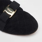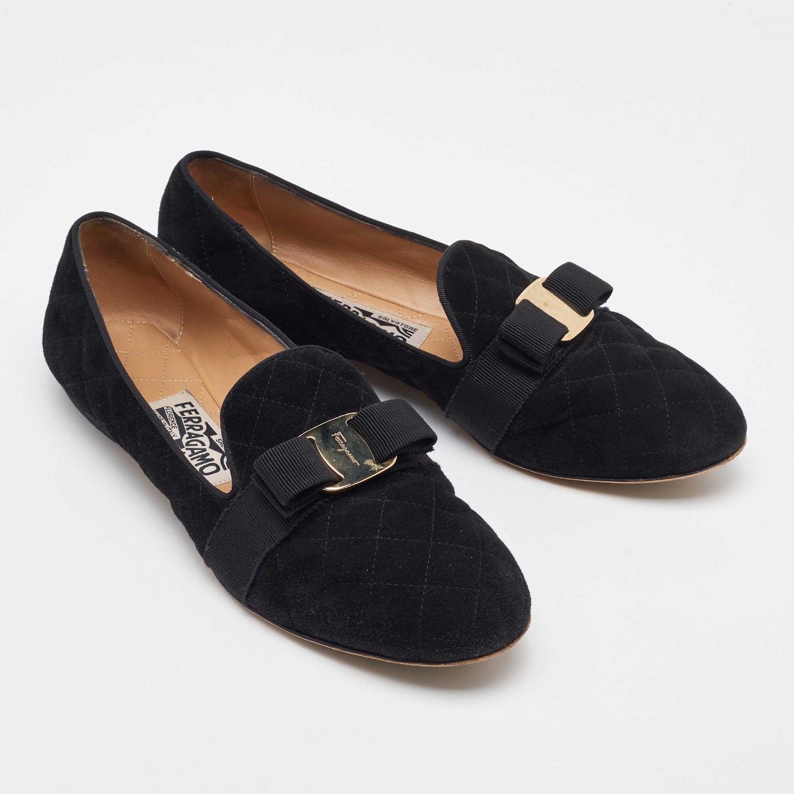 Designed with a classy shape, these black suede smoking slippers are finished with Ferragamo’s signature Vara bow. The soft suede construction adds a touch of refinement, making them a perfect choice for dressy yet comfortable styling.Certified by The Luxury Closet - This item has gone through a detailed authentication process overseen by our experts. We offer a lifetime guarantee of authenticity on all our items. Import duties, taxes and charges are not included in the item price. These charges are the buyers responsibility. Please check with your country’s customs office to determine what these additional cost will be prior to buying. Our eBay Store About Us Contact Us Add to Favorite Sellers Salvatore Ferragamo Black Suede Vara Bow Smoking Slippers Size 40.5 $193.6 Designed with a classy shape, these black suede smoking slippers are finished with Ferragamo’s signature Vara bow. The soft suede construction adds a touch of refinement, making them a perfect choice for dressy yet comfortable styling. Product Details Brand Color Black Dimensions Material Suede Size 40.5 Outsole Width 9 cm Outsole Length 27.5 cm Heel Height Includes The Luxury Closet Packaging Certified by The Luxury Closet This item has gone through a detailed authentication process overseen by our experts. We offer a lifetime guarantee of authenticity on all our items. How We Check The in-house team of experts at The Luxury Closet is highly trained to verify the authenticity and the condition of the luxury products. They ensure that only 100% authentic items are put on sale.The evaluation process is unique with its own mix of assessment criteria and differs according to the category. Each item is evaluated based on the following combination of hallmarks, hardware, stitching, symmetry, material, craftsmanship, stamping, codes, hologram stickers, and packaging. Our authenticators also check if the items have been modified or amended (e.g., aftermarket diamonds, replaced batteries, repaired bags, etc.) International Buyers Import duties, taxes and charges are not included in the item price. These charges are the buyers responsibility. Please check with your country’s customs office to determine what these additional cost will be prior to buying.